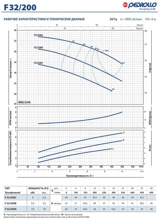 Центробежный насос стандарта "EN 733" Pedrollo F 32/200A 7,5 кВт