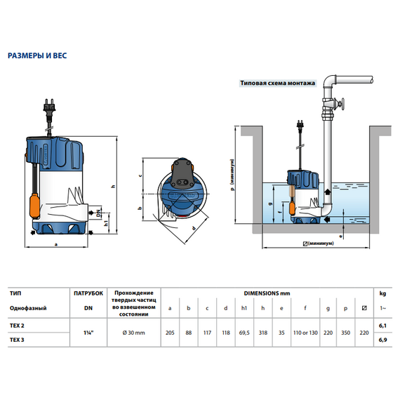Дренажный насос Pedrollo TEX 2 0,37 kW