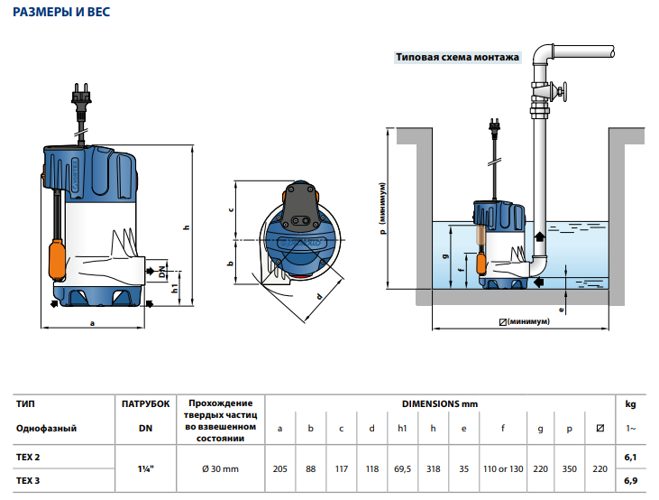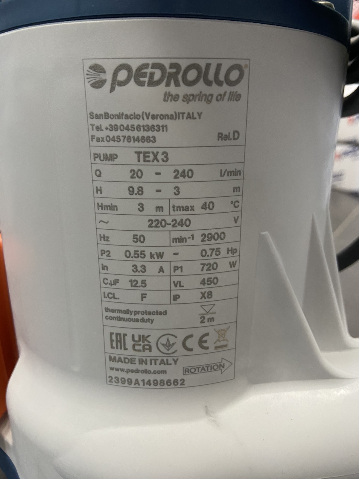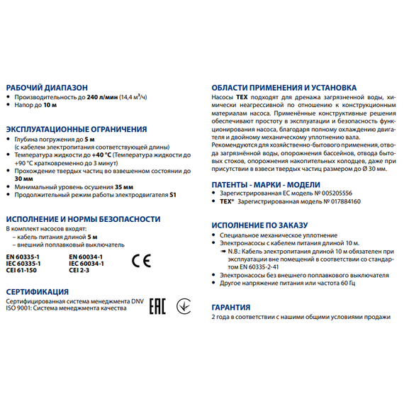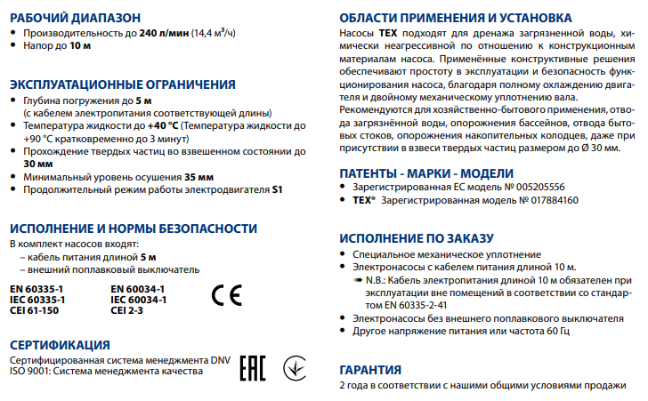 Дренажный насос Pedrollo TEX 3 0,55 kW
