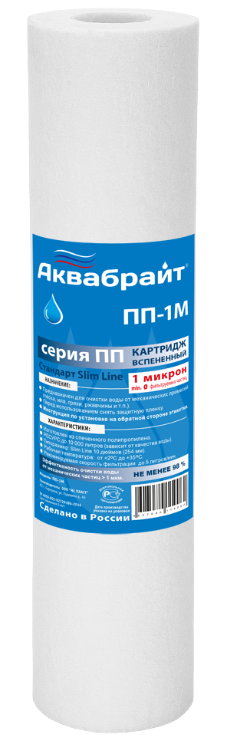 Картридж полипропилен 10'', 1 mcr для очистки воды. Aquabright
