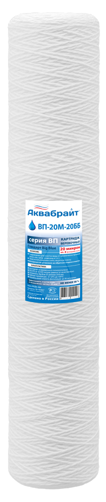 Картридж полипропилен нить Big Blue 20'', 20 mcr для очистки воды, Aquabright