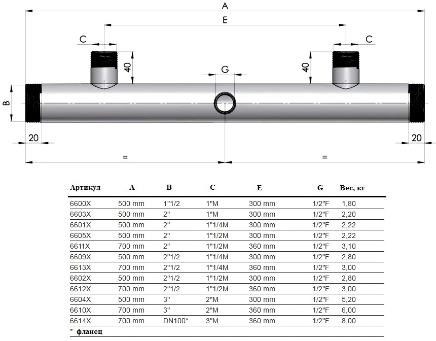 Коллектор для 2-х насосов - подача Fome 495 мм 1"1/2 x1"M