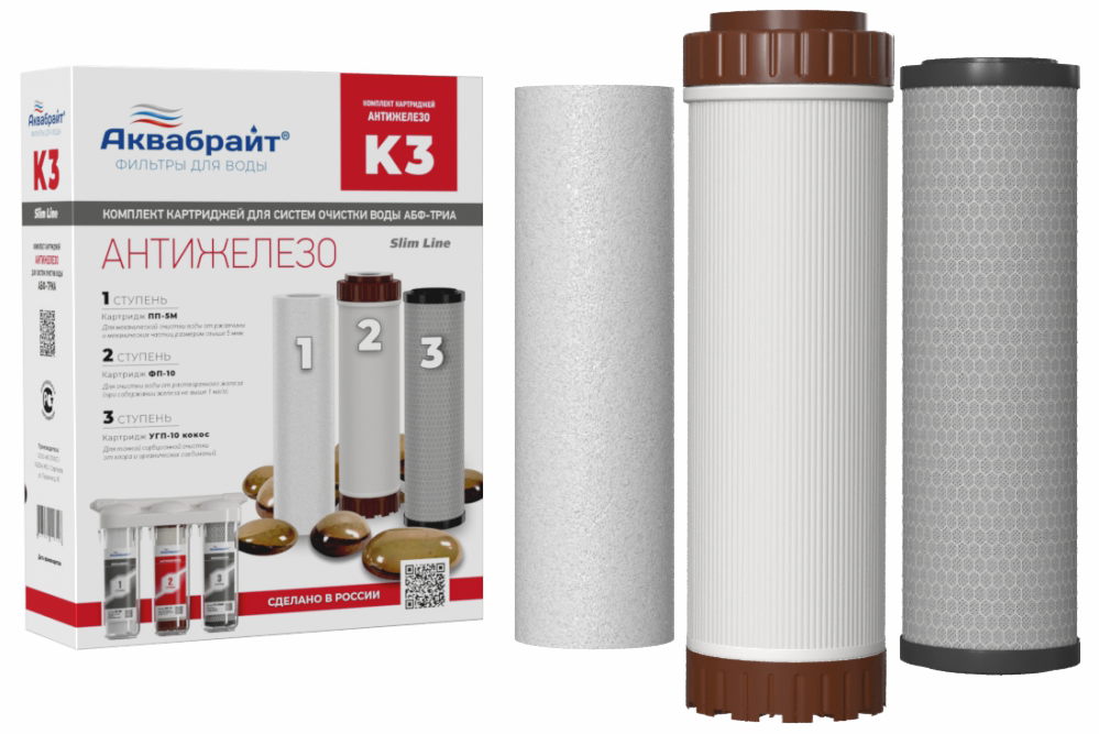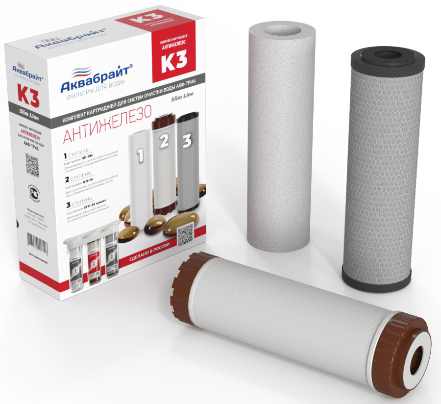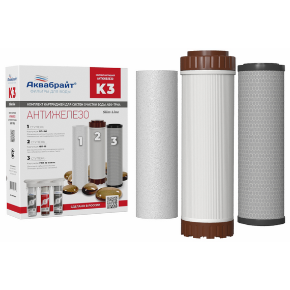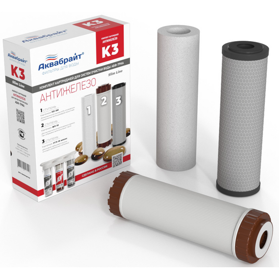 Комплект Картриджей К-3 ОБЕЗЖЕЛЕЗИВАНИЕ для очистки воды Aquabright