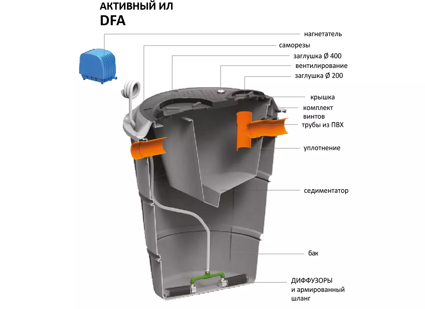 Комплект септика АЭРОБНЫЙ С СЕДИМЕНТАТОРОМ AIS DFA Starplast