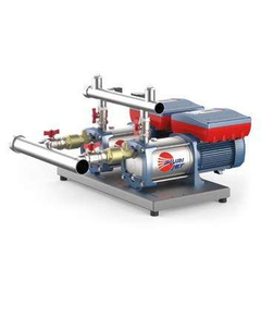 Каждая насосная станция установлена на стальной раме, защищенной от коррозии и опирающейся на резиновые ножки, которые поглощают вибрации. Такое решение позволяет осуществлять монтаж станции без необходимости подготовки специального фундамента. Станция оснащена расширительным баком, что минимизирует гидроудар в системе. Для станций с более высокими эксплуатационными параметрами на коллекторах устанавливаются конденсаторы, которые дополнительно гасят напряжения в трубопроводах. Каждый насос оснащен обратным клапаном на стороне всасывания, а для сервисных целей с обеих сторон установлены запорные шаровые краны. Это позволяет проводить сервисные работы на одном насосе без необходимости отключения всей насосной станции. Коллекторы изготовлены из нержавеющей стали с разъемами для крепления контрольно-измерительной аппаратуры: реле давления, манометров и сливного клапана.