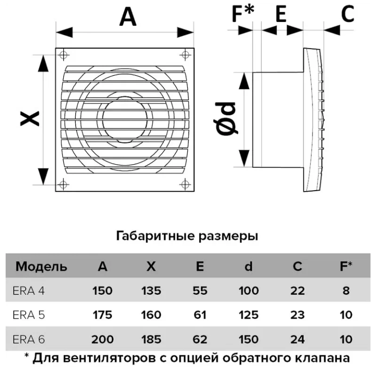Осевой вытяжной вентилятор с обратным клапаном ERA 5C D125 White