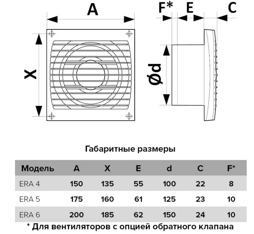 Осевой вытяжной вентилятор с сеткой и шнурком ERA 5S-02 D125 White