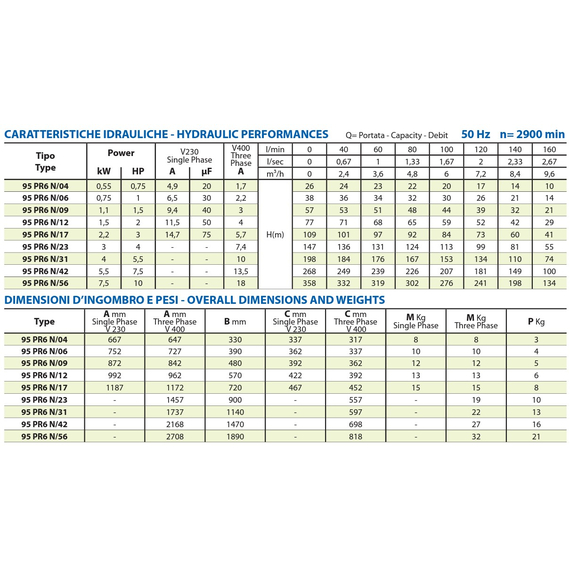 Погружной насос Panelli 4'' 4kW 5,5HP 95 PR6 N/31 400V