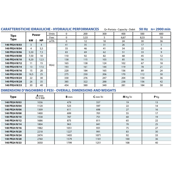 Погружной насос Panelli 6'' 13kW 17,5HP 140 PR24 N/14 400V