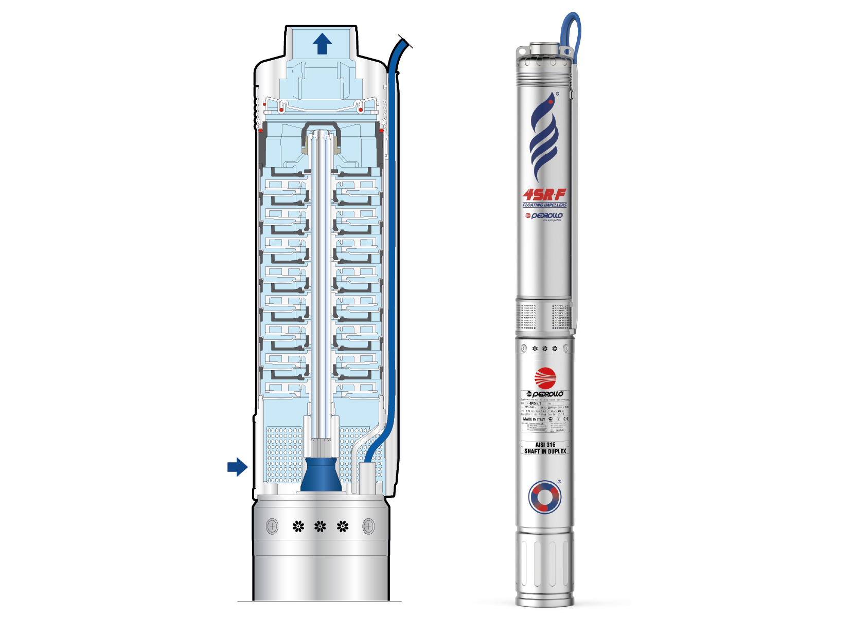 Погружной насос Pedrollo 4SRm 8/13 - F - PD 2,2 kW