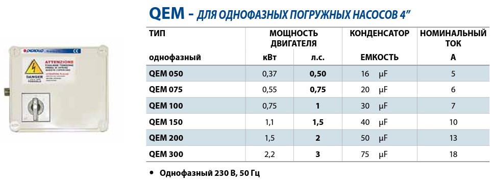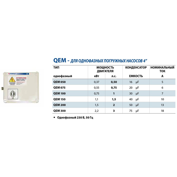 Пульт управления однофазный (2.2 кВт) QEM 300 Pedrollo
