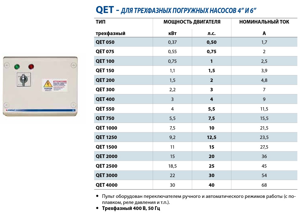 Пульт управления трехфазный (2.2 кВт) QET 300 Pedrollo
