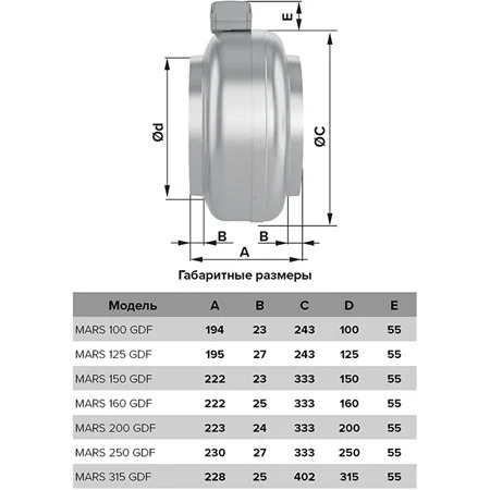 Вентилятор центробежный канальный MARS д.125 Era Pro